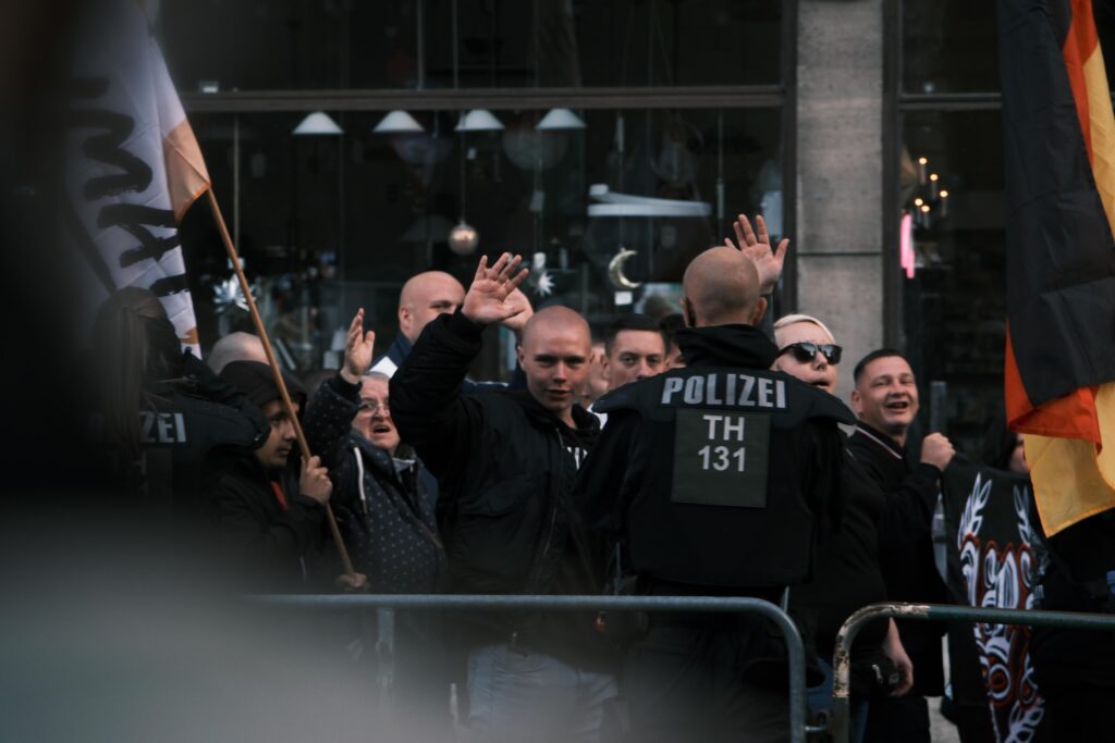 Auf Seiten der Rechten wurden dabei einige Hitlergrüße gezeigt, die aber ungesühnt blieben, weil die Bullen sich lieber mit dem Abfilmen des Gegenprotests die Zeit vertrieben.