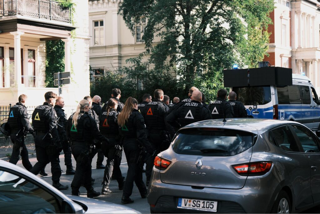 Kaum dort aus den Bussen gestiegen, wurde es auch schon etwas hektisch: Noch während einige der schon zuvor aus Richtung Sachsen(-Anhalt) mit dem Zug angereisten Genoss*innen in einer Maßnahme steckten, wurde der Rest dazu aufgefordert, durch eine enge Unterführung zum Bahnhofsplatz zu laufen. – Kesselgefahr hoch zwei und daher etwas irritierend, dass der Großteil der Anwesenden der Aufforderung sofort nachkam.