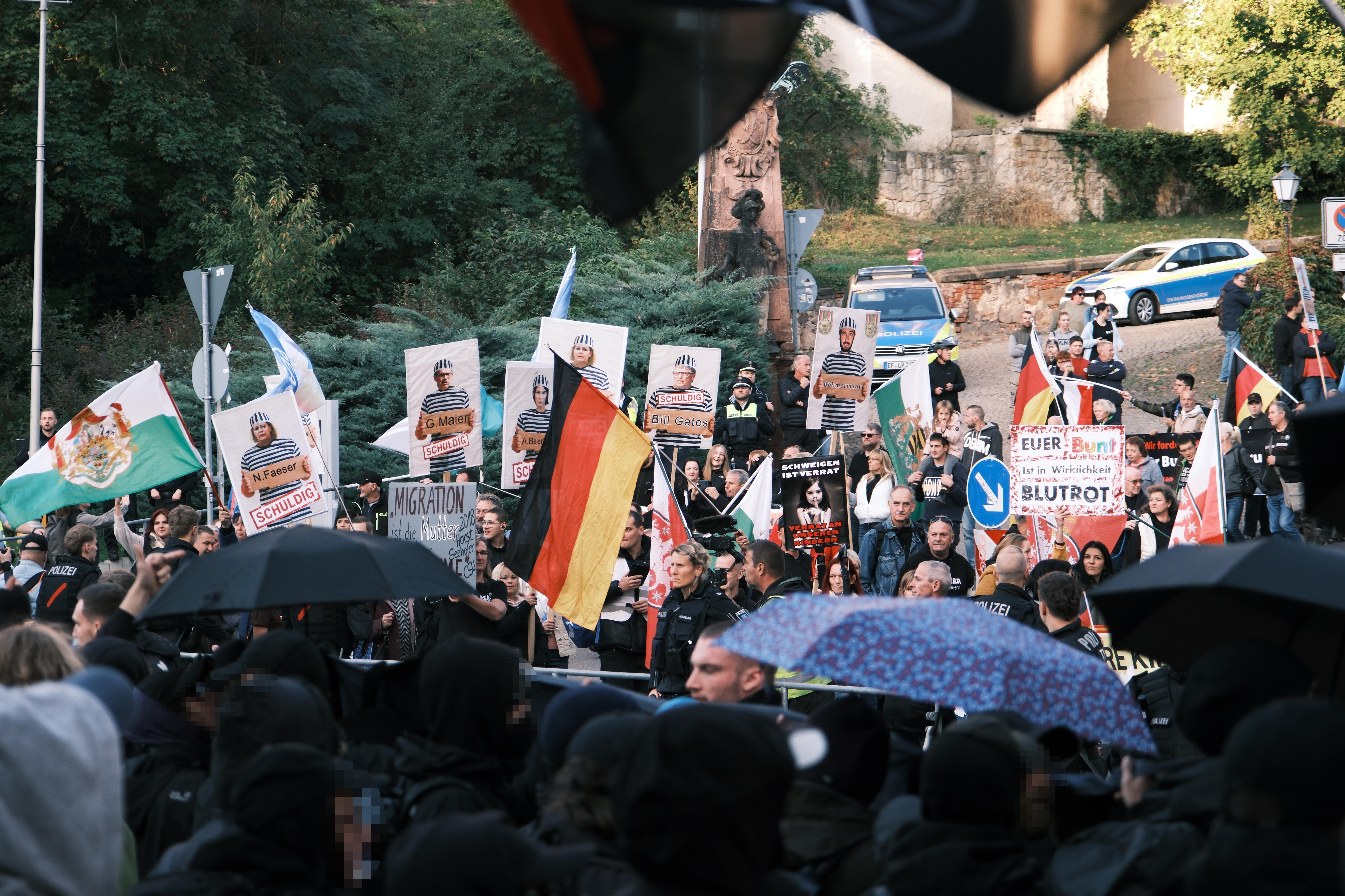 Bis auf Mobi auf den Kanälen von Heimat und JN schienen sie sich allerdings aus der Organisation der Demo herauszuhalten. Wir werten dies als weiteren Beleg dafür, wie wenig bei den Rechten zusammengeht, wenn Christian Klar einmal nicht zur Verfügung steht, wie es sich auch schon eine Woche zuvor beim CSD in Gera zeigte.