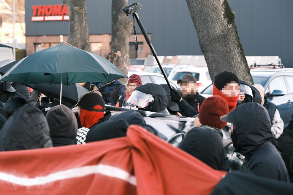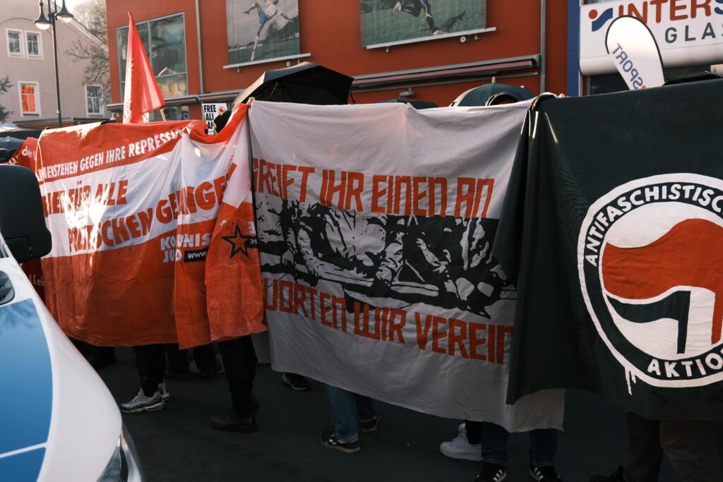 Die rund 350 Antifaschist*innen haben sich dennoch nie einschüchtern lassen – weder von dem martialischen Auftreten der Polizei, noch von den Angriffen der Faschos.