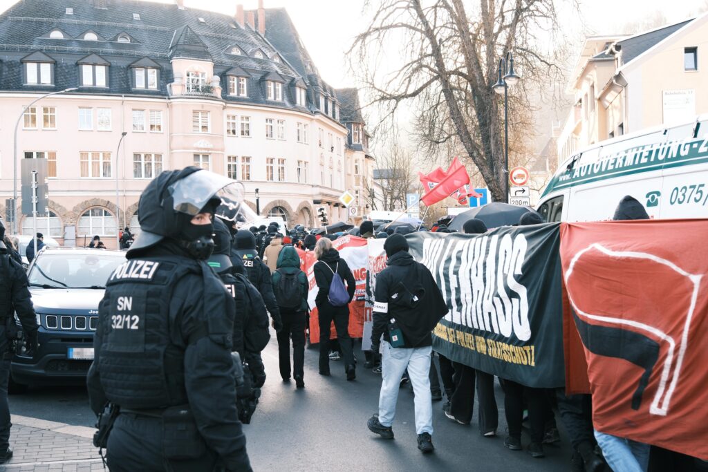 Die “Freien Sachsen” machten schon seit Wochen gegen die Demo mobil und sprachen von einem “Hassmarsch” – ein Narrativ, das bei der Stadtöffentlichkeit sowie der Polizei offensichtlich verfangen hat.