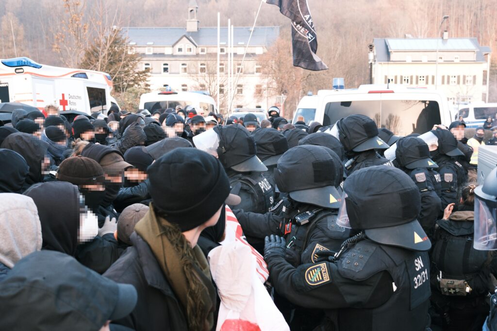 Die Bullen taten damit alles dafür, genau das Bild zu abzugeben, welches vorher von den Freien Sachsen gezeichnet worden war: Hier die um ihren Weihnachtsmarkt und ihre Bergparade besorgte Stadtgesellschaft und dort die bösen Antifaschist*innen.